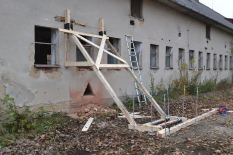Vysokopevnostní dřevěné trámy určené k vytvoření stabilizace staticky namáhaných prvků pro záchranářství.